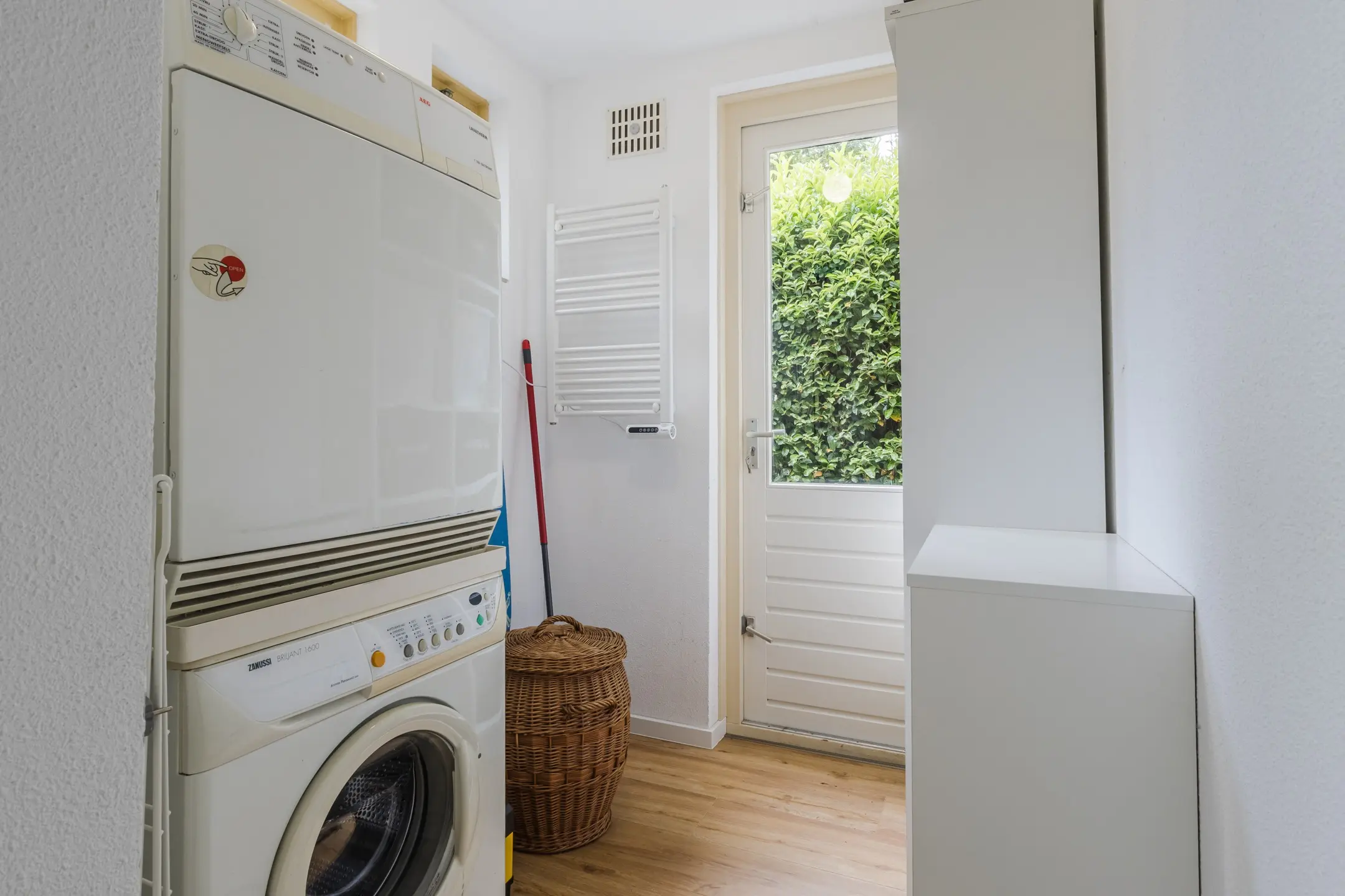 Via openslaande deuren bereikt u de diepe, volledig omheinde achtertuin met vrij uitzicht, ruime berging, tuinverlichting en meerdere watertappunten – perfect voor lange zomeravonden en ongestoord buitenleven.