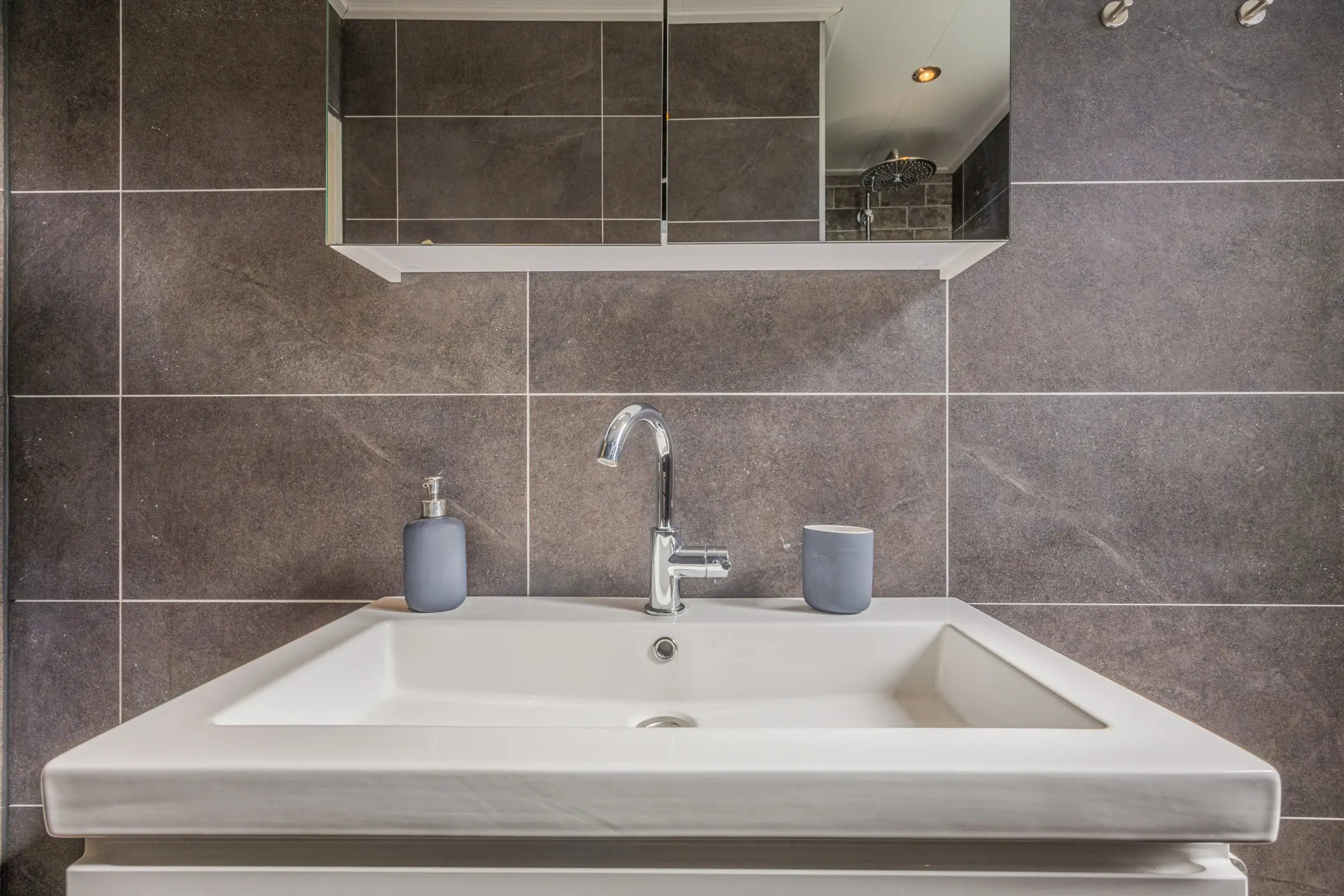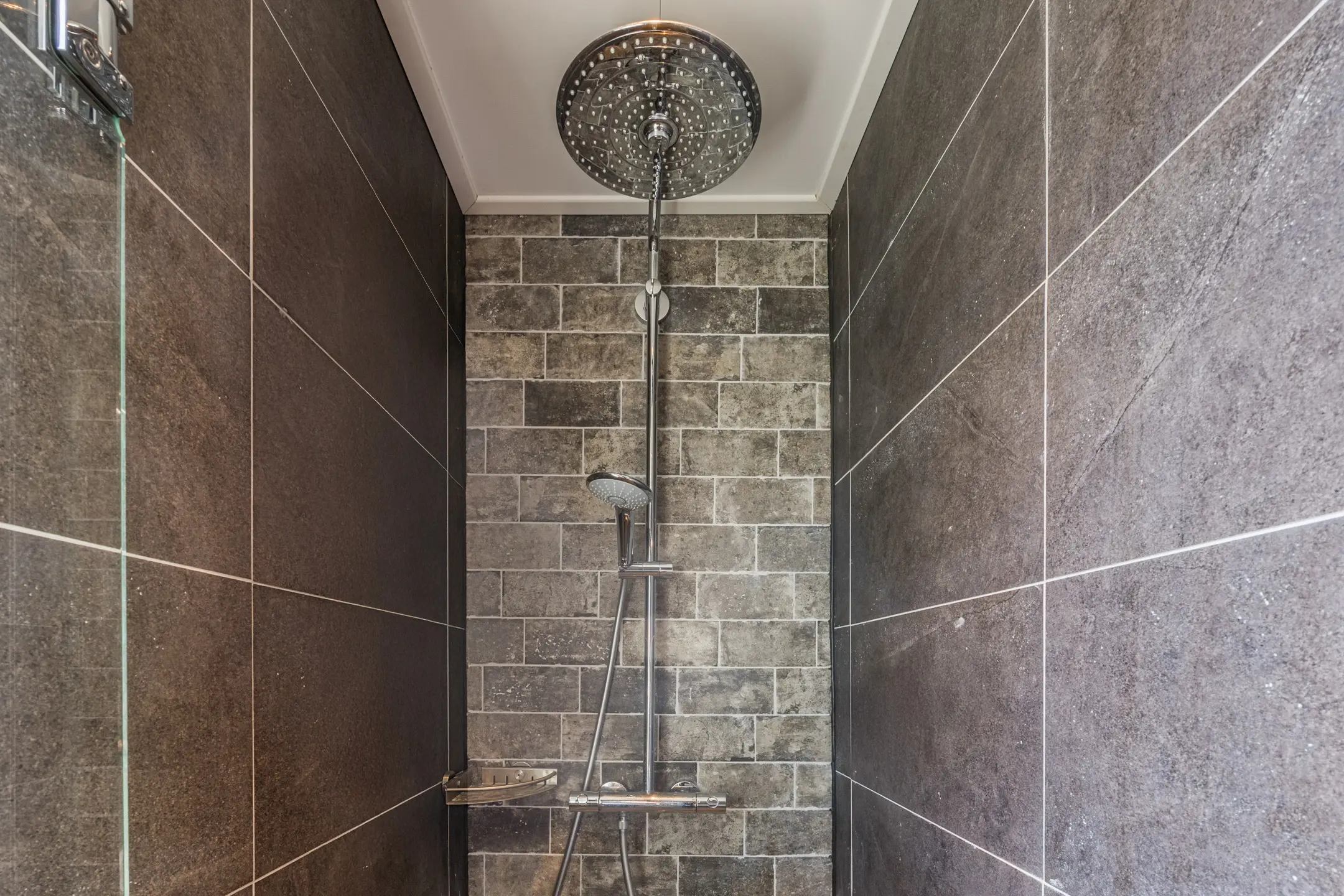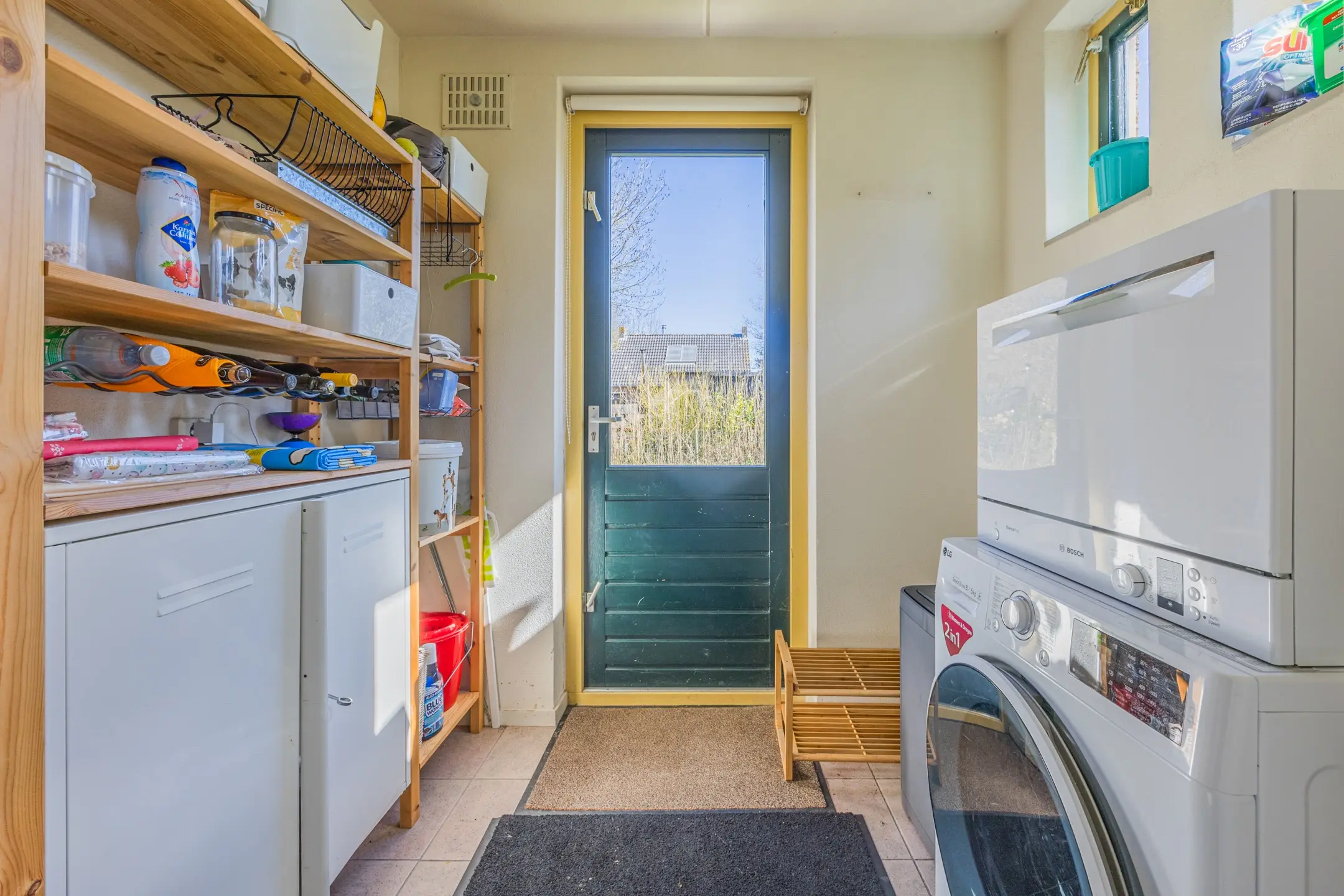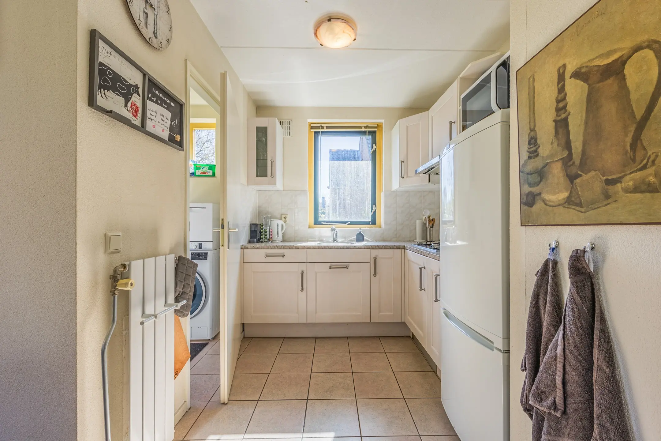Entree, hal, meterkast, separaat toilet (hangend) met fonteintje, moderne badkamer met wastafelmeubel, designradiator en inloop(regen)douche, zeer ruime woonkamer met openslaande deuren naar de achtertuin, nette keuken welke is voorzien van inbouwapparatuur, bijkeuken en slaapkamer I aan de voorzijde.
