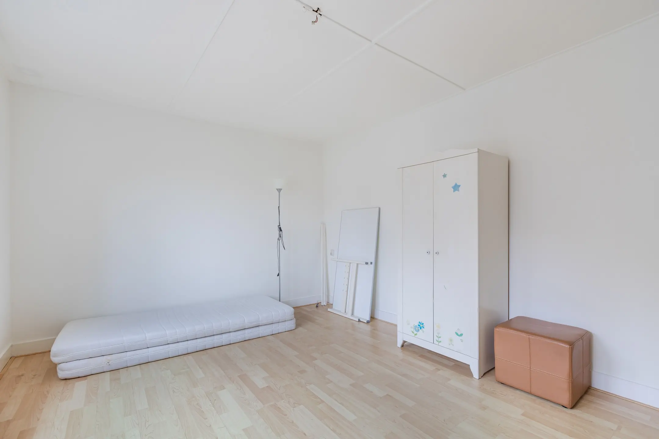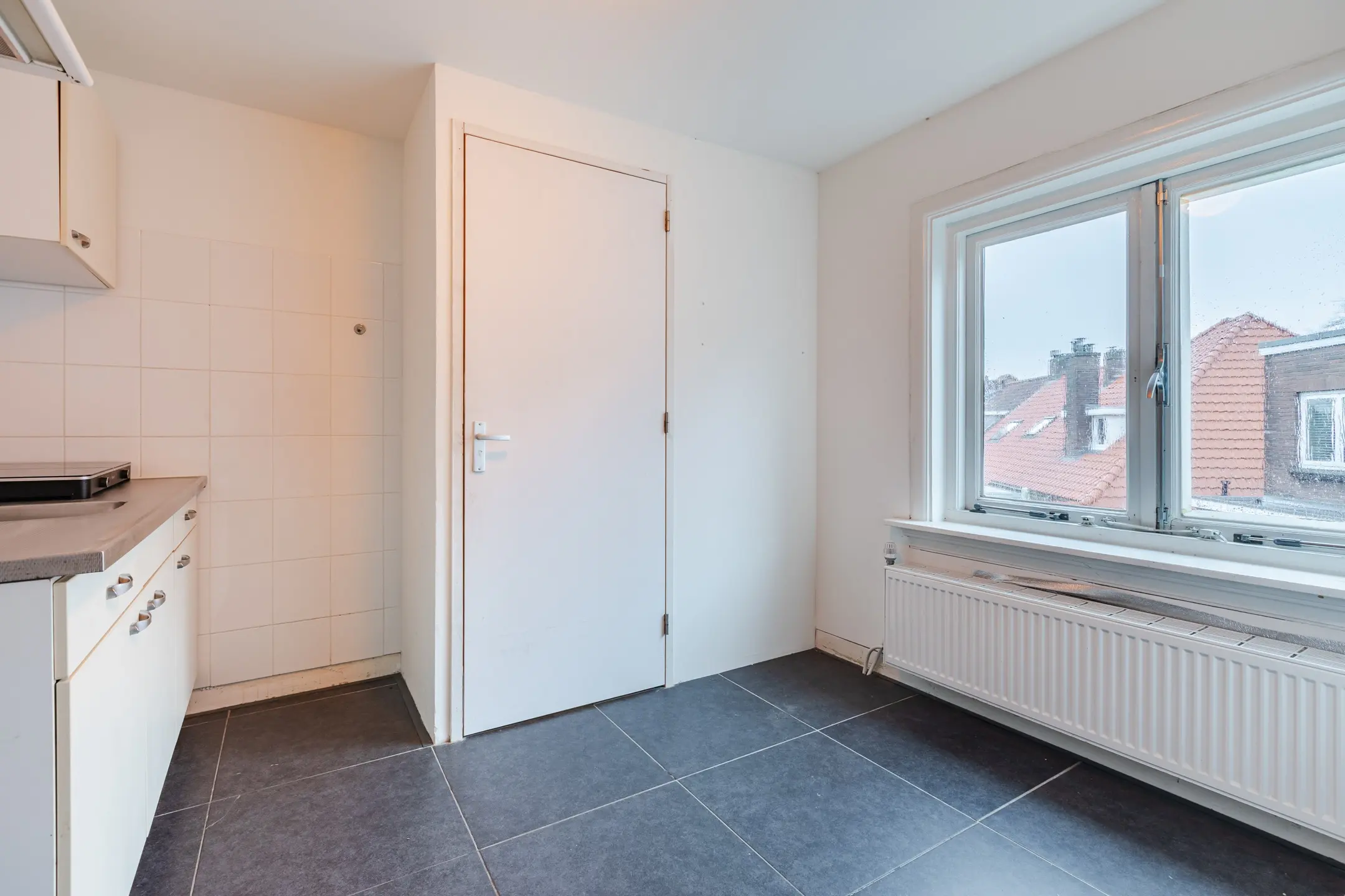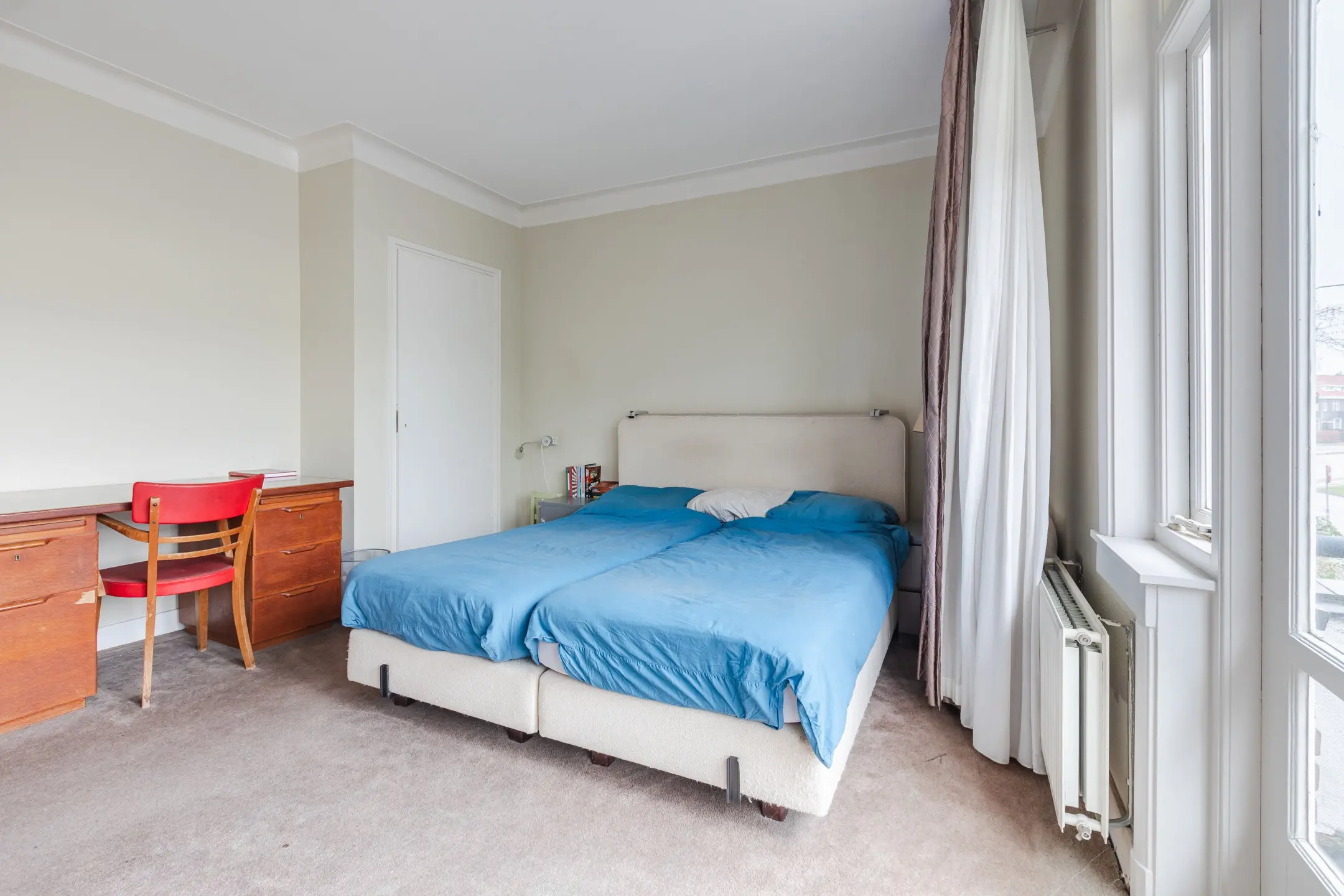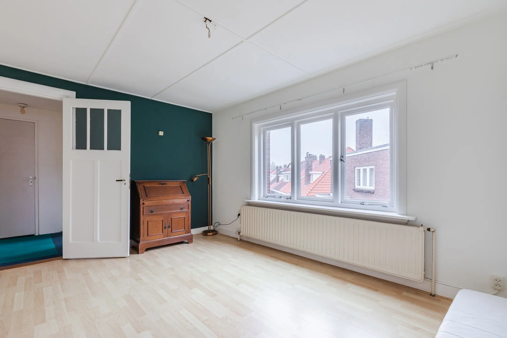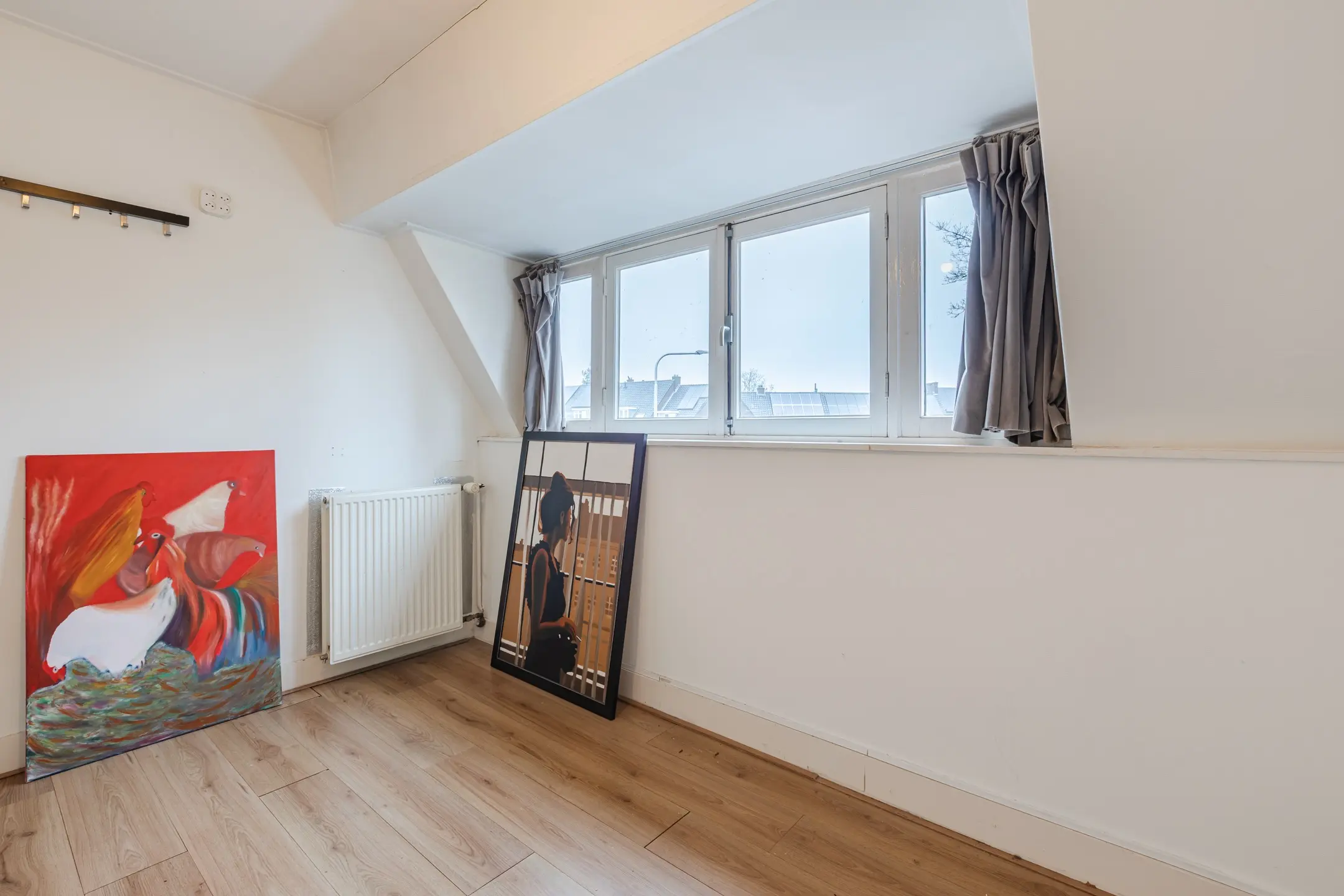 De grootste slaapkamer aan de voorzijde heeft een balkon en vaste kasten.