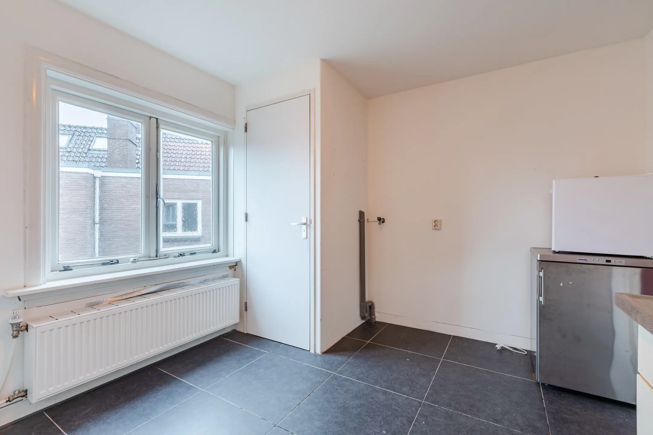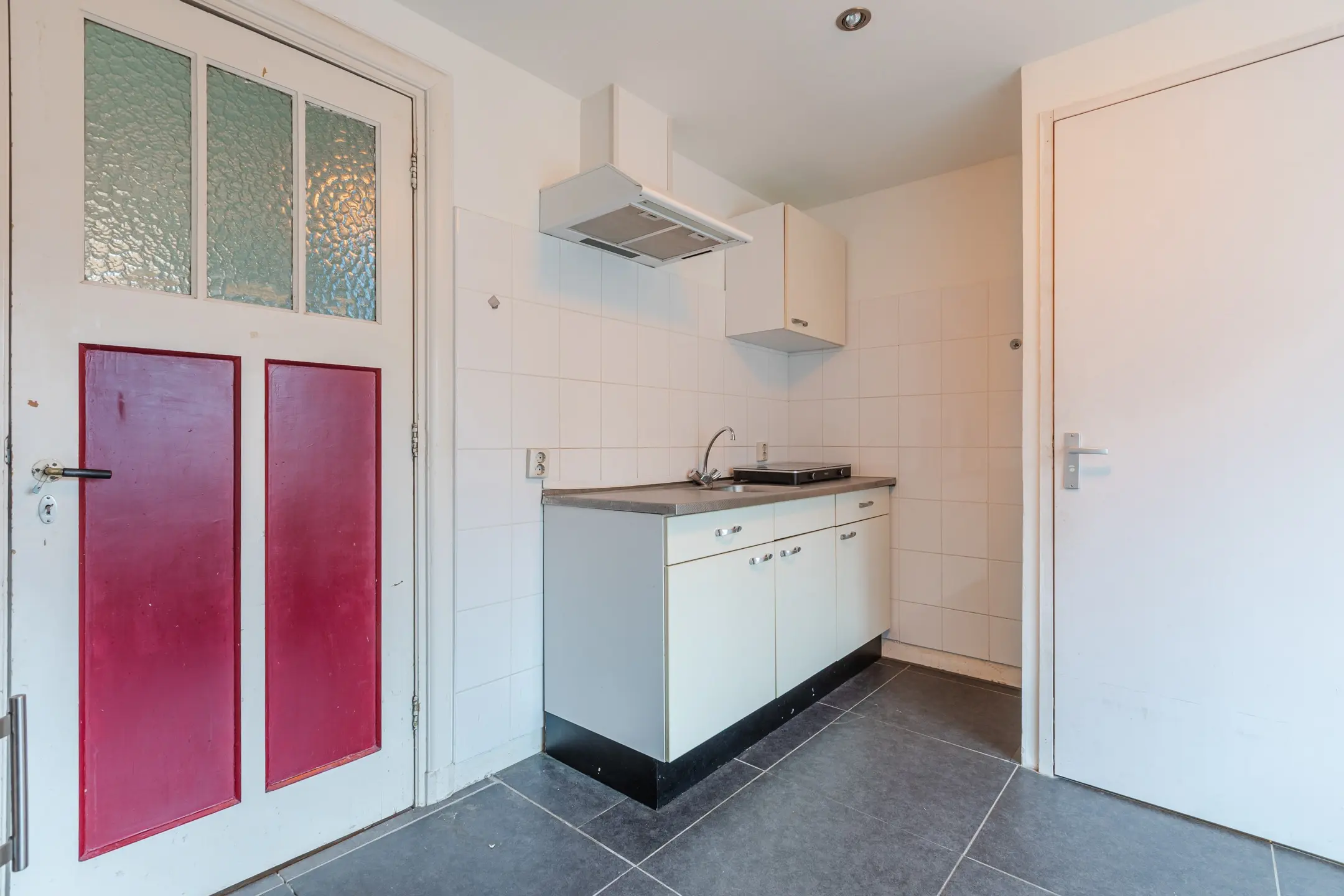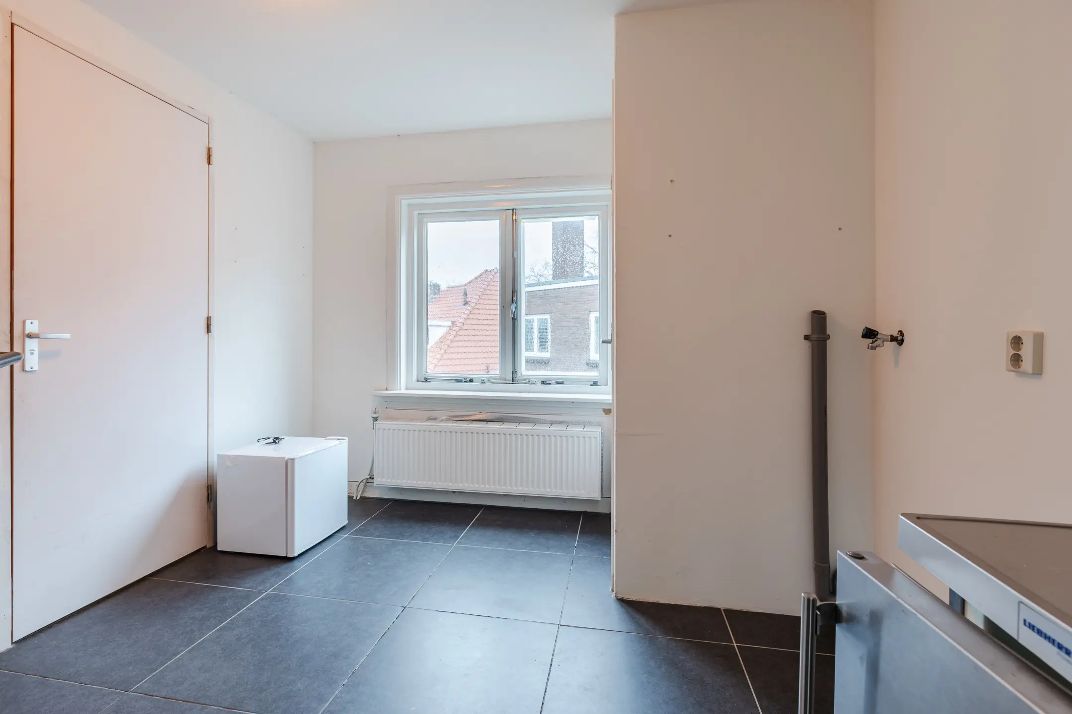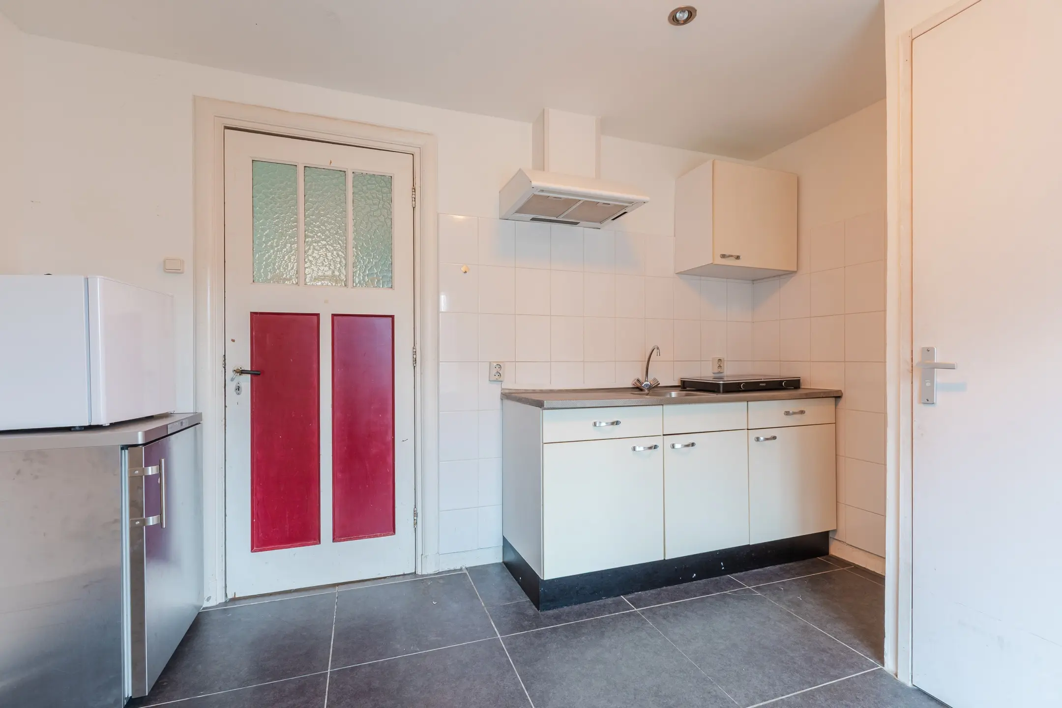 De keuken is voorzien van een keukenblok, compacte badkamer met wastafel en douche, separate toilet