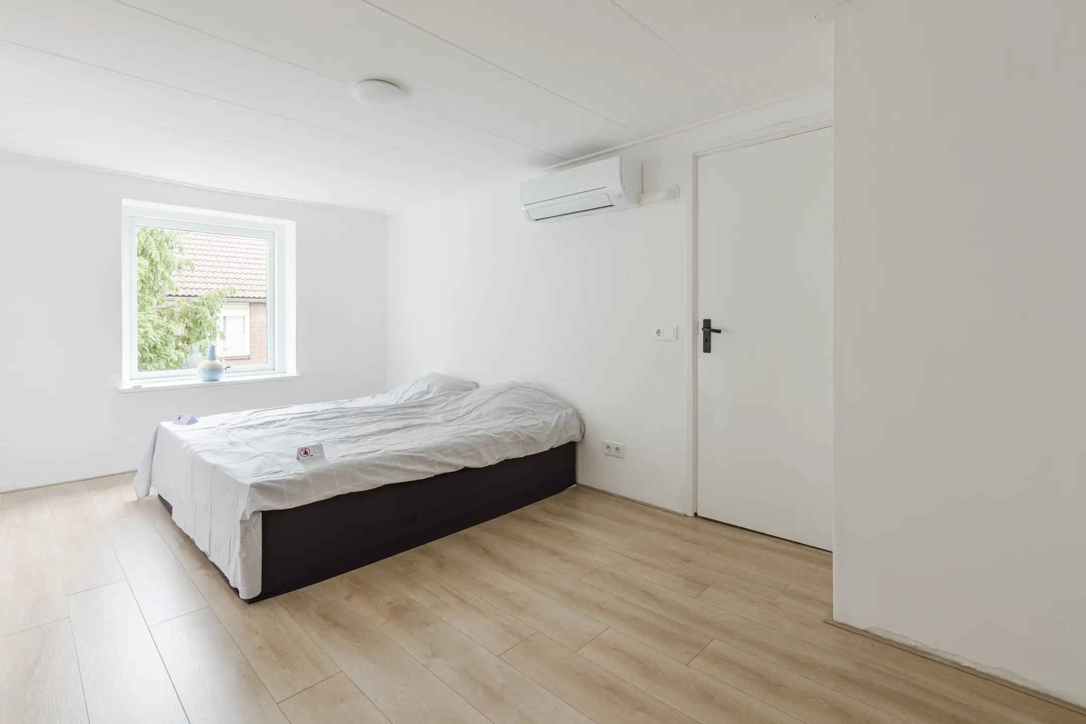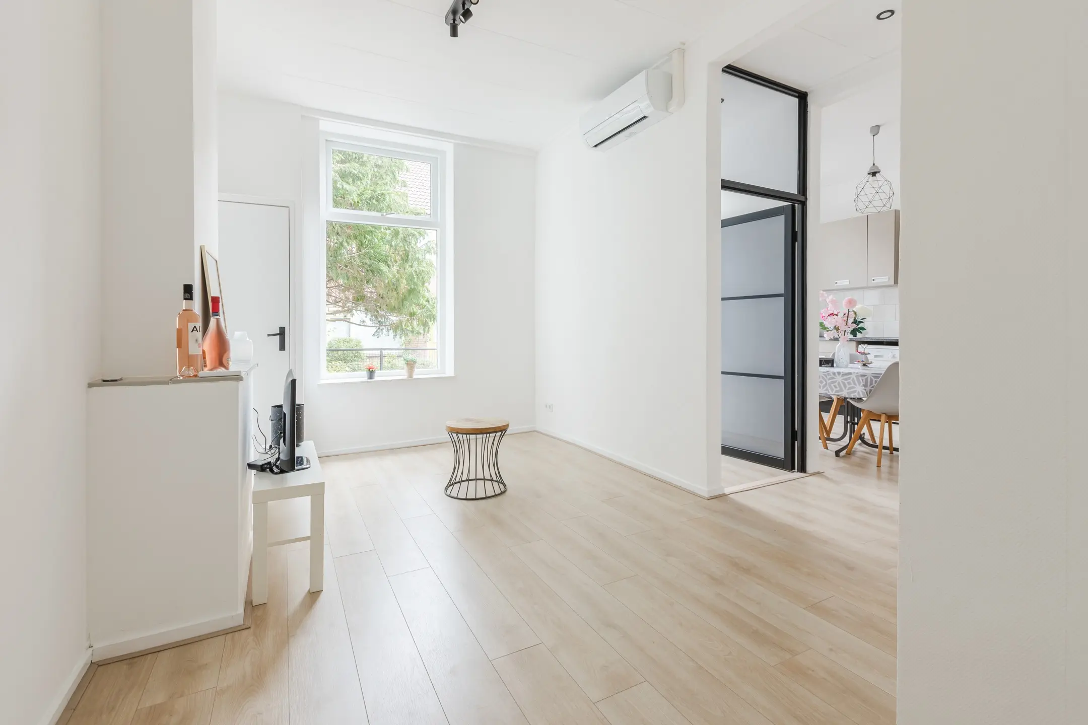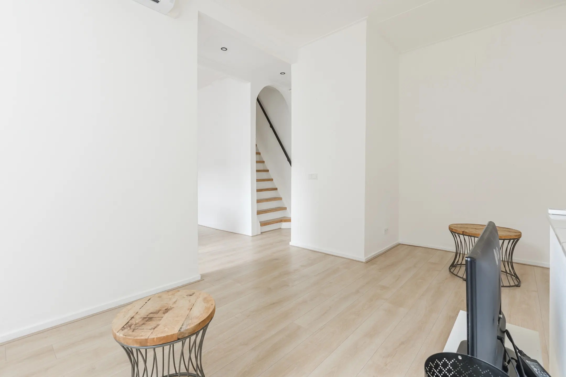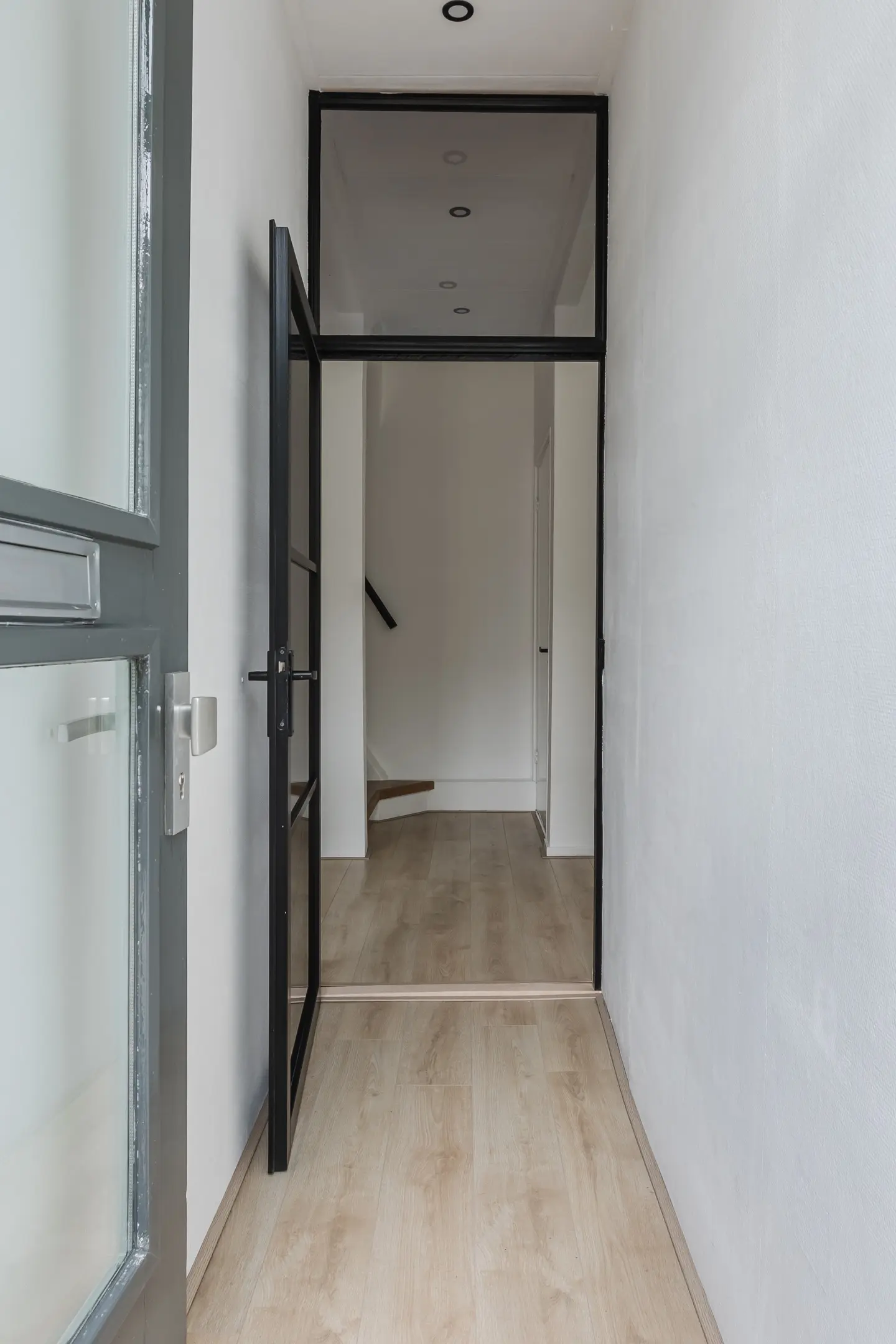 Entree, gang, ruime woonkamer met warmtepomp modern separaat toilet (hangend) met fonteintje, trappenkast, (woon)keuken met voldoende ruimte en inbouwapparatuur. Zowel de (woon)keuken als de woonkamer zijn voorzien van een airconditioner met geavanceerde inverter warmtepomp.