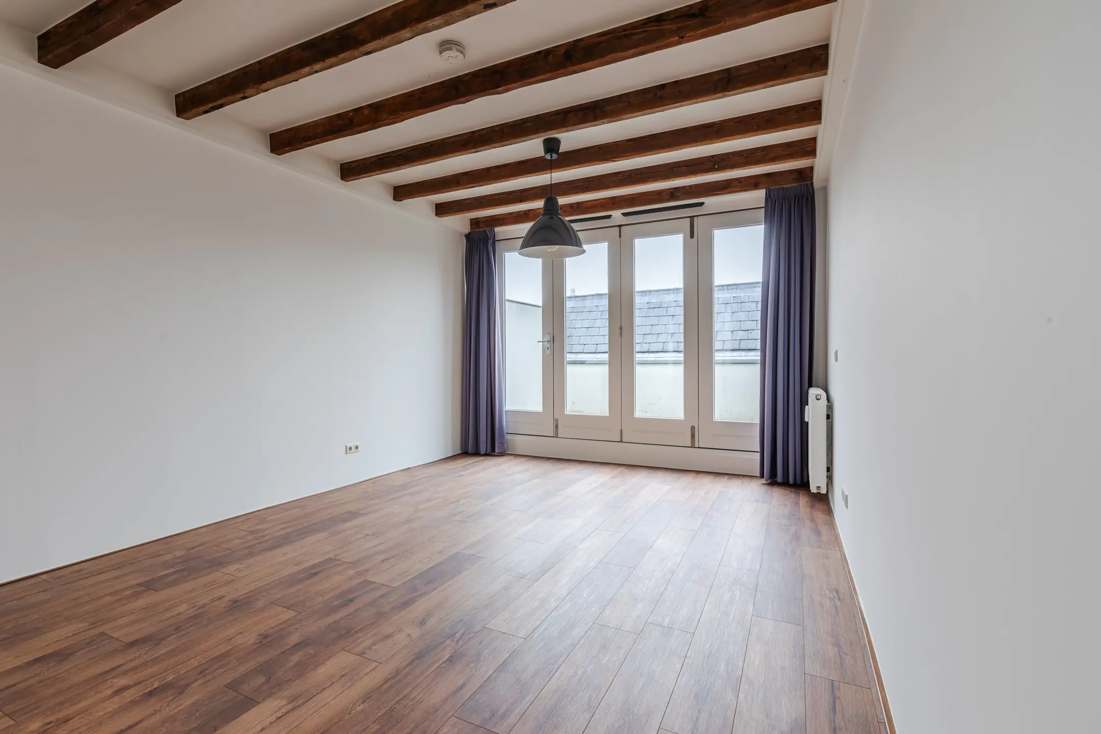 Lichte woonkamer met toegang tot het balkon. Het balkon biedt veel privacy.