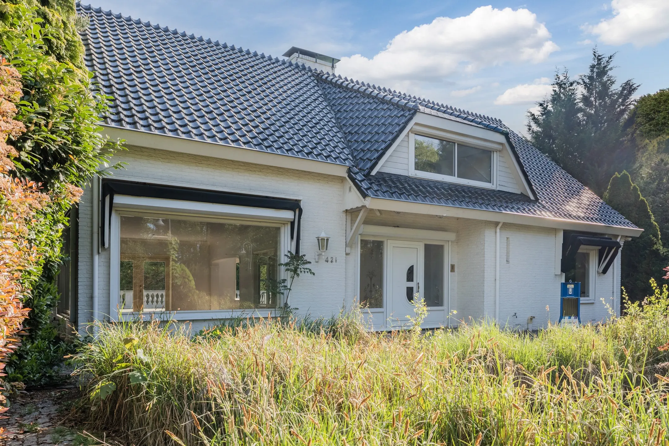 Te koop:In een bosrijke omgeving ligt dit ruime vrijstaande woonhuis met een ruim bijgebouw.