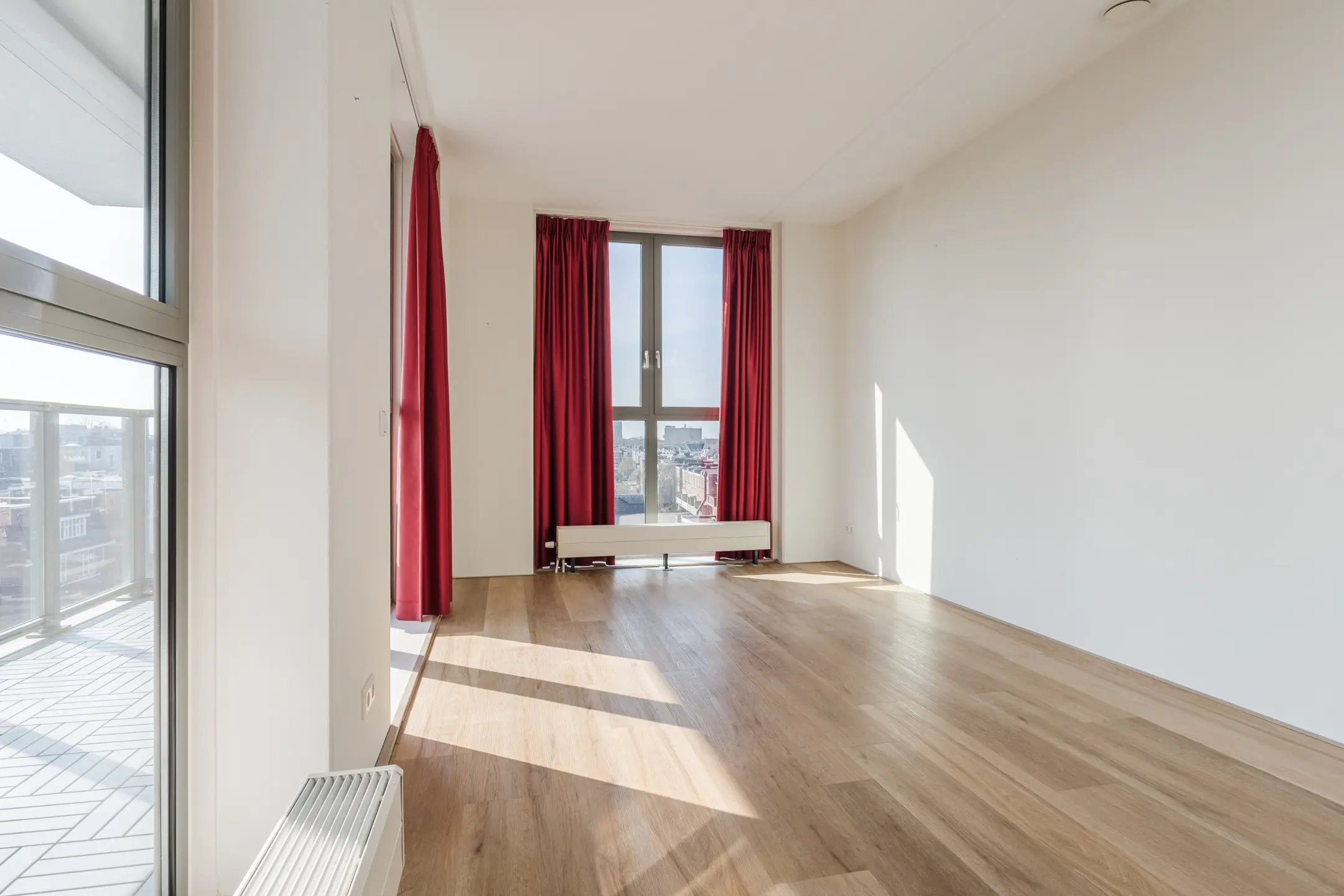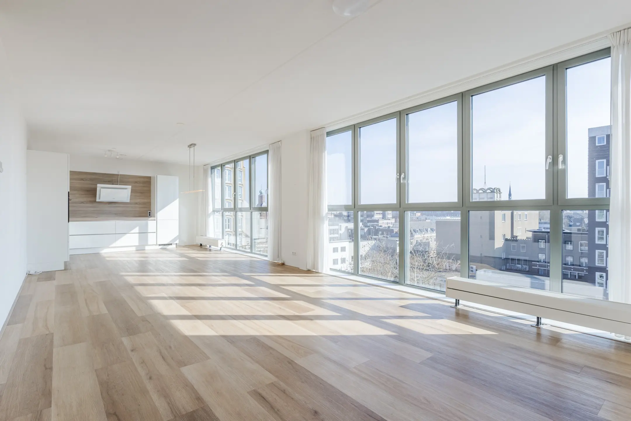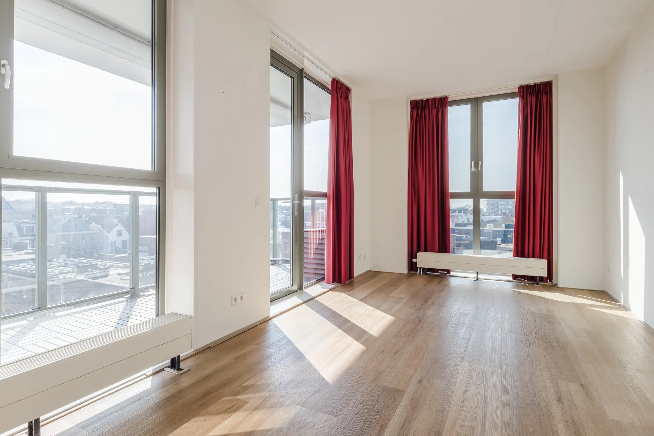 - De grote raampartijen zorgen voor veel lichtinval in het appartement;