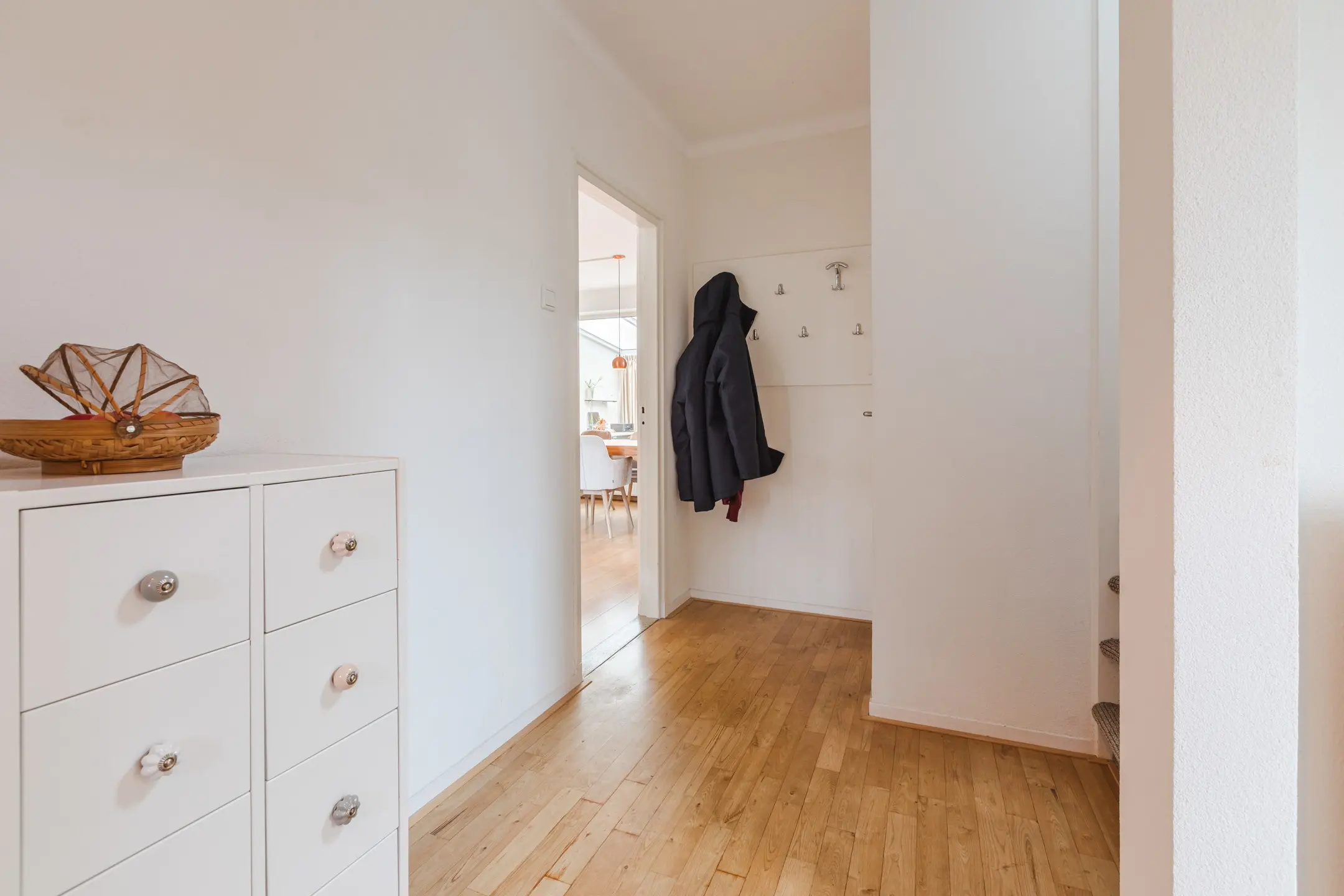 Entree, hal met garderobe en een hangend toilet met fonteintje. Vanuit de hal is tevens de kelder bereikbaar, welke is ingericht als praktische provisieruimte.