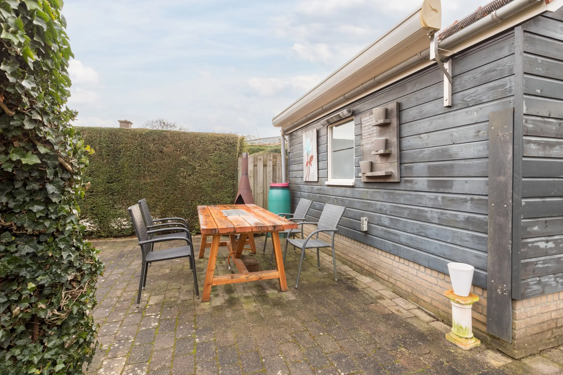 Het bijgebouw is deels aan de woning verbonden, maar momenteel niet meer intern toegankelijk (wel weer makkelijk te realiseren) en uitsluitend via buiten bereikbaar. Deze ruimte beschikt over een eigen entree met hal, een woonkamer met open keuken, een ruime slaapkamer en een nette badkamer voorzien van douchecabine, wastafel en toilet. Daarnaast is er een bijkeuken met deur naar buiten/tuin. De aanbouw is volledig gelijkvloers.